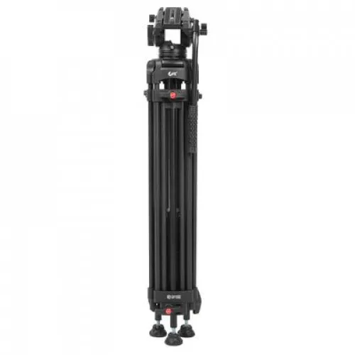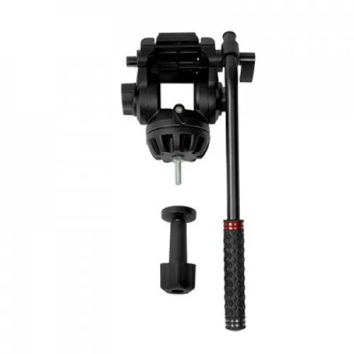 2D-жидкостная видеоголовка штатива вращается вокруг своей оси на 360 и наклоняется в пределах от +90° до -80° для проведения плавного горизонтального и вертикального панорамирования. Головка изготавливается из легкого и прочного алюминиево-магниевого сплава, оборудована быстросъемной площадкой, съемной рукояткой и пузырьковым уровнем.