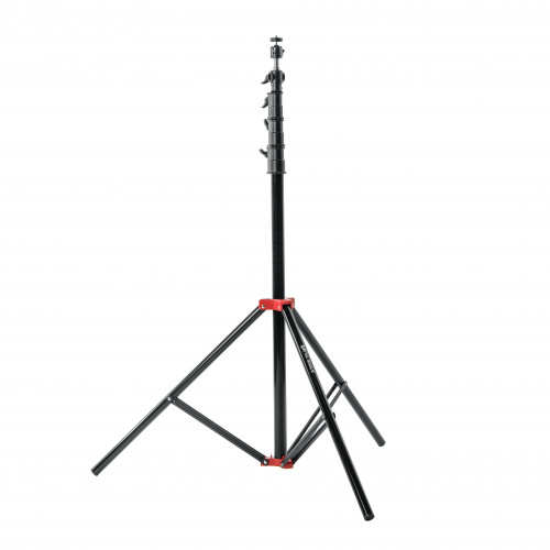 Основание стойки представляет собой складную треногу с винтовым фиксатором. Максимальный размах ножек достигает 106 см, обеспечивая надежную опору для крепления оборудования. Ножки стойки стабилизированы специальной алюминиевой растяжкой, повышающей общую устойчивость конструкции. При съемке в сложных условиях можно закрепить на основании стойки дополнительный груз, например, , заполненный песком.