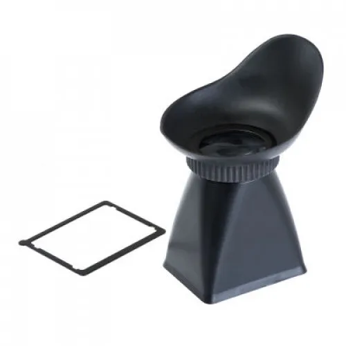 Предназначен для установки на камеры Canon 550D/5DIII (или другие с аналогичными по размеру ЖК-дисплеями). Позволяет превратить ЖК-экран ф/а в удобный видоискатель, незаменимый при фото-видеосъемке на ярком свете. Большой резиновый наглазник защищает от боковой засветки, а линза с увеличением 2,8х позволяет лучше контролировать глубину резкости и экспозицию.