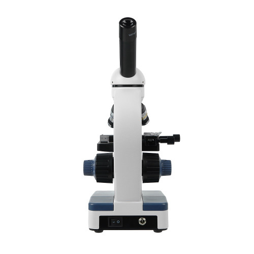 Осветитель снабжен коллекторной линзой, что повышает равномерность и яркость освещения предмета исследования и имеет бесступенчатую регулировку яркости. Питание микроскопа производится от 3-х щелочных батареек тип АА или от входящего в комплект сетевого адаптера.