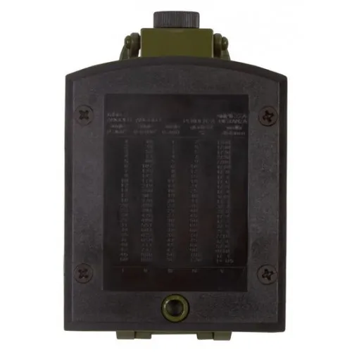 В Levenhuk Army AC20 также есть клинометр с полулимбом. Это небольшое устройство используется для измерения углов наклона и падения. Кроме того, присутствует пузырьковый уровень, который помогает выравнивать положение компаса относительно горизонтали. На задней крышке расположена таблица с формулами.