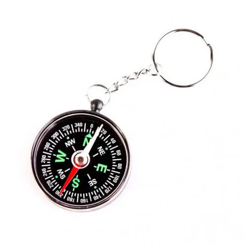 Туристический компас с цепочкой и кольцом, круглая капсула выполнена из пластика.