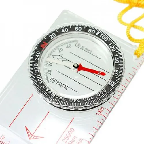 Компасспортивный состоит из основания (планшета) с линейкой для часто используемых масштабов карт 1:25000 (0.5 km), специальные направляющие красные параллельные линии, используемые для движения по азимуту. На планшете укреплена вращающаяся колба с компасом. Внутри капсулы находится магнитная стрелка, на дне капсулы параллельные линии для ориентирования компаса по линиям магнитного меридиана и индексы S, N, W, E для правильной ориентации компаса относительно северного направления. Сверху капсулы находится шкала азимута.