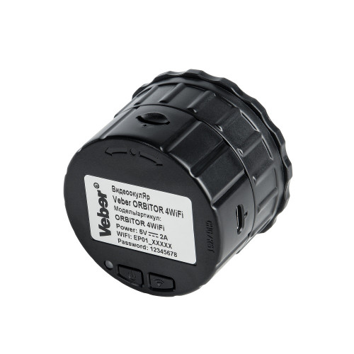 Veber ORBITOR устанавливается на окуляр зрительной трубы, бинокля, монокуляра, телескопа или микроскопа. Благодаря встроенной литиевой батарее емкостью 1500 мАч видеоокуляр не нуждается в дополнительном источнике питания и может работать автономно до 4 часов без перерыва.