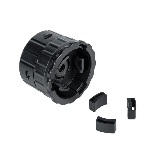 Устройство совместимо с любыми приборами, имеющими окуляр с внешним диаметром от 24 до 55 мм. Для фиксации камера имеет подвижные зажимы, которые сдвигаются и раздвигаются с помощью вращающегося крепежного кольца.