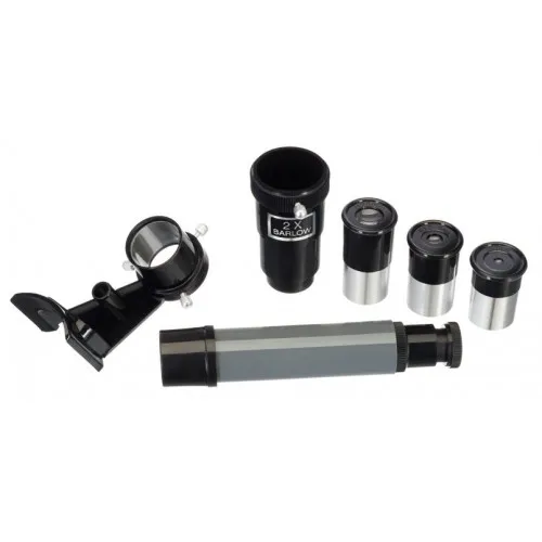 Оптика сделана из стекла с антибликовым покрытием, хорошо прорисовывает детали астрономических объектов, не привносит аберраций в картинку. В комплектацию уже включены оптические аксессуары, которые могут пригодиться для наблюдений, – приобретать что-либо дополнительно не нужно. Оптическая труба установлена на экваториальную монтировку, которая хорошо проявляет себя при длительных наблюдениях. С ее помощью удобно вести объекты по небосклону, для этого используются ручки тонких движений.