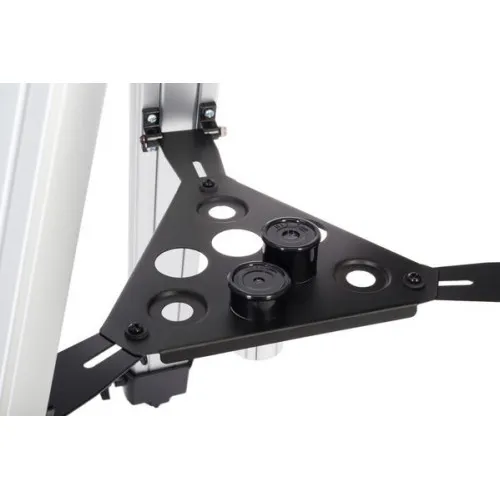 Алюминиевая тренога устойчивая и надежно стоит даже на неровных поверхностях. В центре треноги расположена полочка для аксессуаров: на ней можно разместить все необходимые принадлежности. Высоту треноги можно регулировать.
