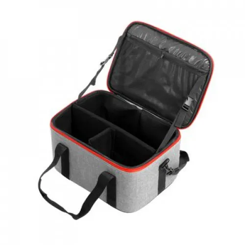 Для комфортного пользования в уличных и студийных условиях на внешнем дне сумки предусмотрены пластиковые полозья высотой 17 мм, которые защищают ткань корпуса от загрязнения. Удобство транспортировки обеспечено за счет двух ручек с фиксатором и съемного ремня на металлической фурнитуре.